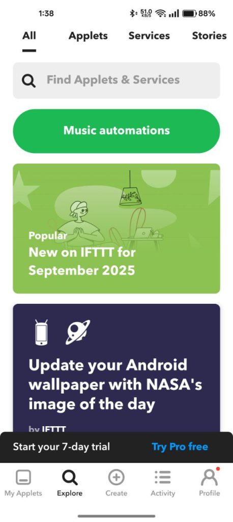 FTTT is an automation application for Android designed to simplify various tasks like toggling device settings, sending notifications or integrating with smart-home tools.