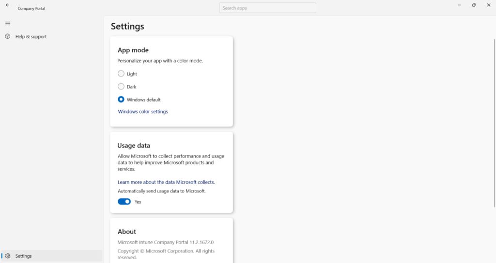 - there are tools to review enrolled devices, view compliance history and request support from IT;