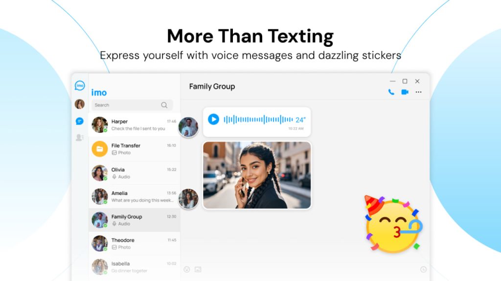 imo Messenger is a popular program for Windows that enables text, voice, video calls and file sharing across devices, just like Telegram, WhatsApp and Wechat.