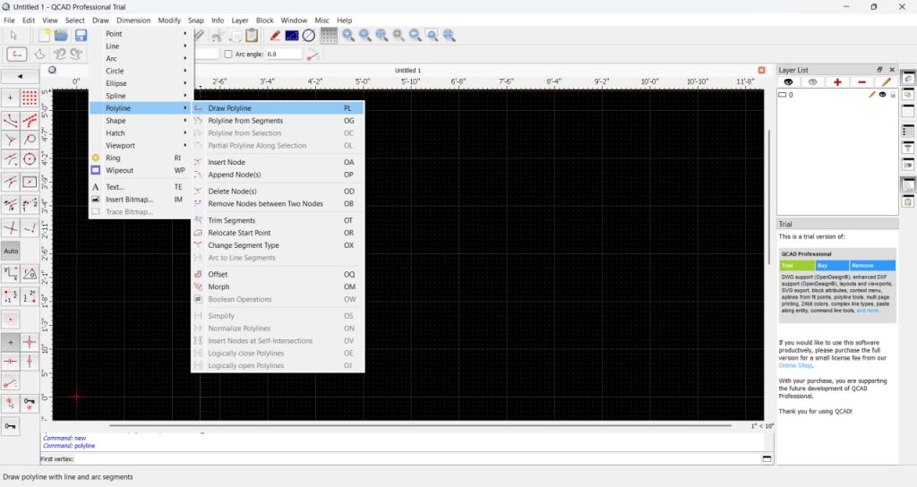 QCAD is a 2D design program equipped for drafting, technical drawing and schematic creation, available on Windows desktops and laptops. Perfect for working with layers, blocks and a wide variety of file formats.