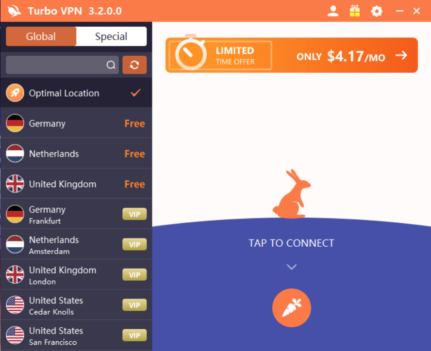 Turbo VPN is a virtual private network program for Windows intended to provide users with secure and private internet access by masking their IP address and encrypting data traffic.