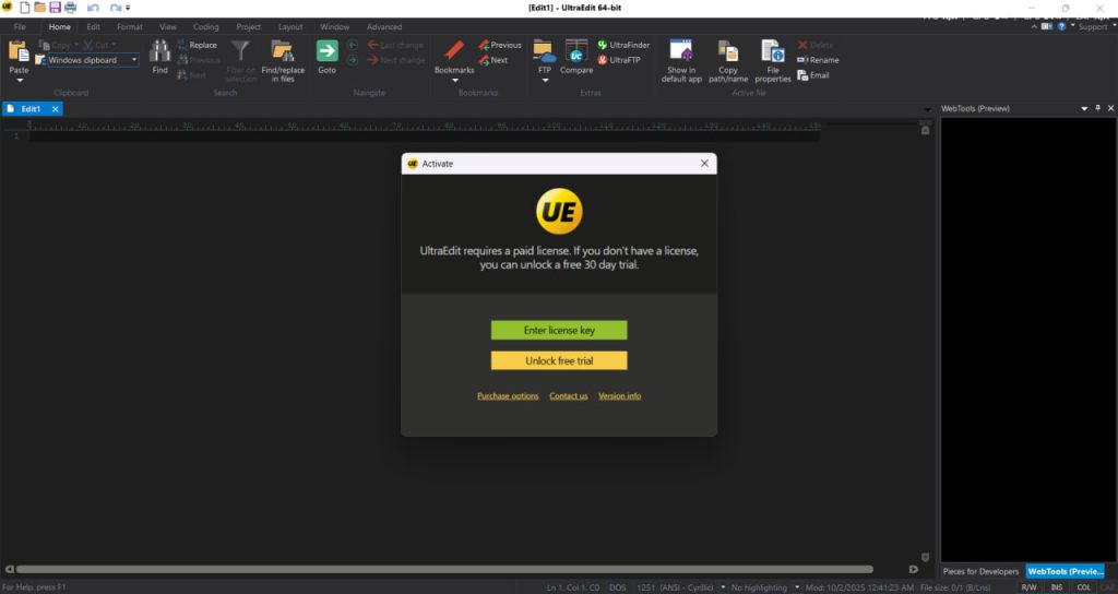 UltraEdit is a well-known Windows program designed for text editing and handling large documents. There is a wide range of integrated utilities and customization options.